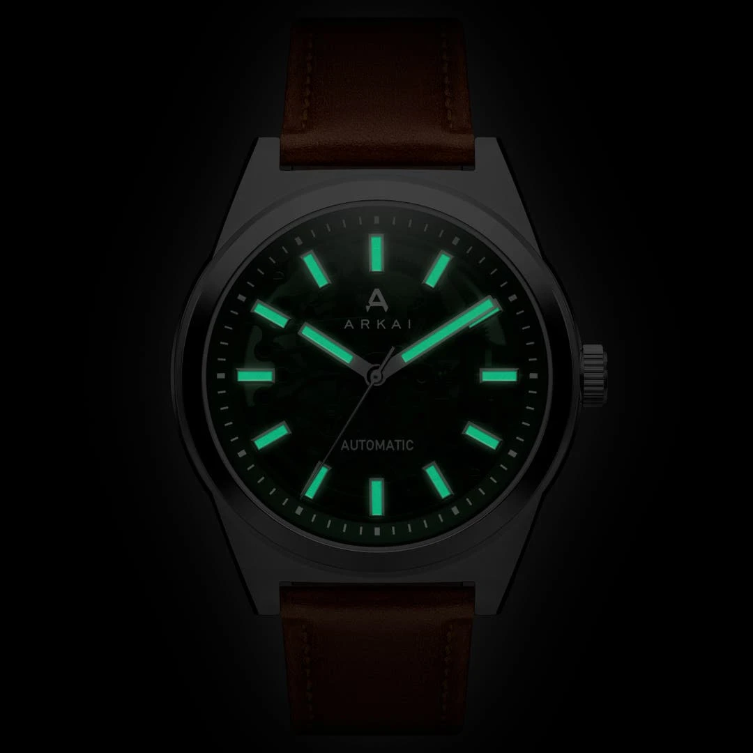 Le cadran est protégé par un verre saphir – un verre presque aussi résistant que le diamant et pratiquement inrayable. Ses aiguilles et graduations phosphorescentes améliorent sa lisibilité.