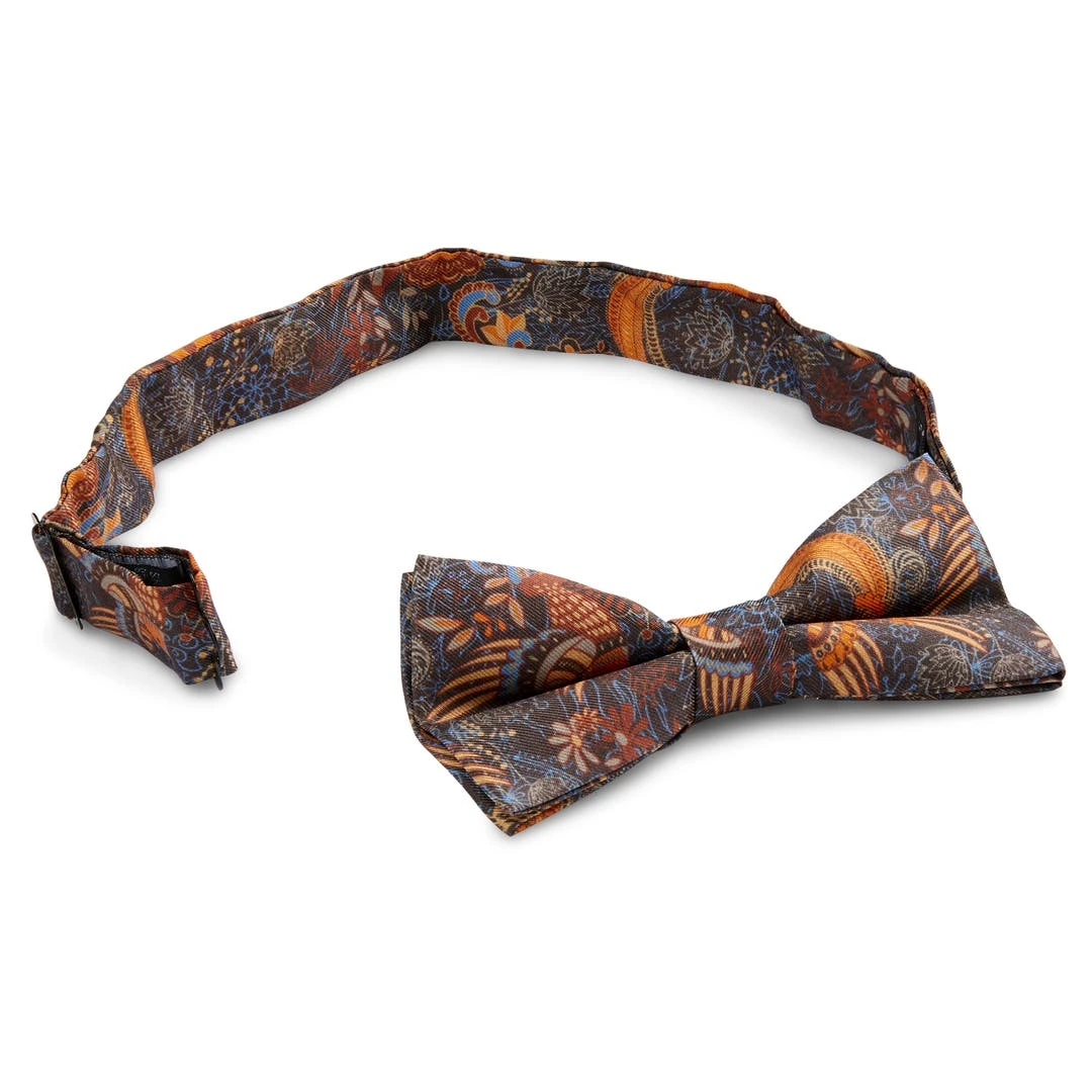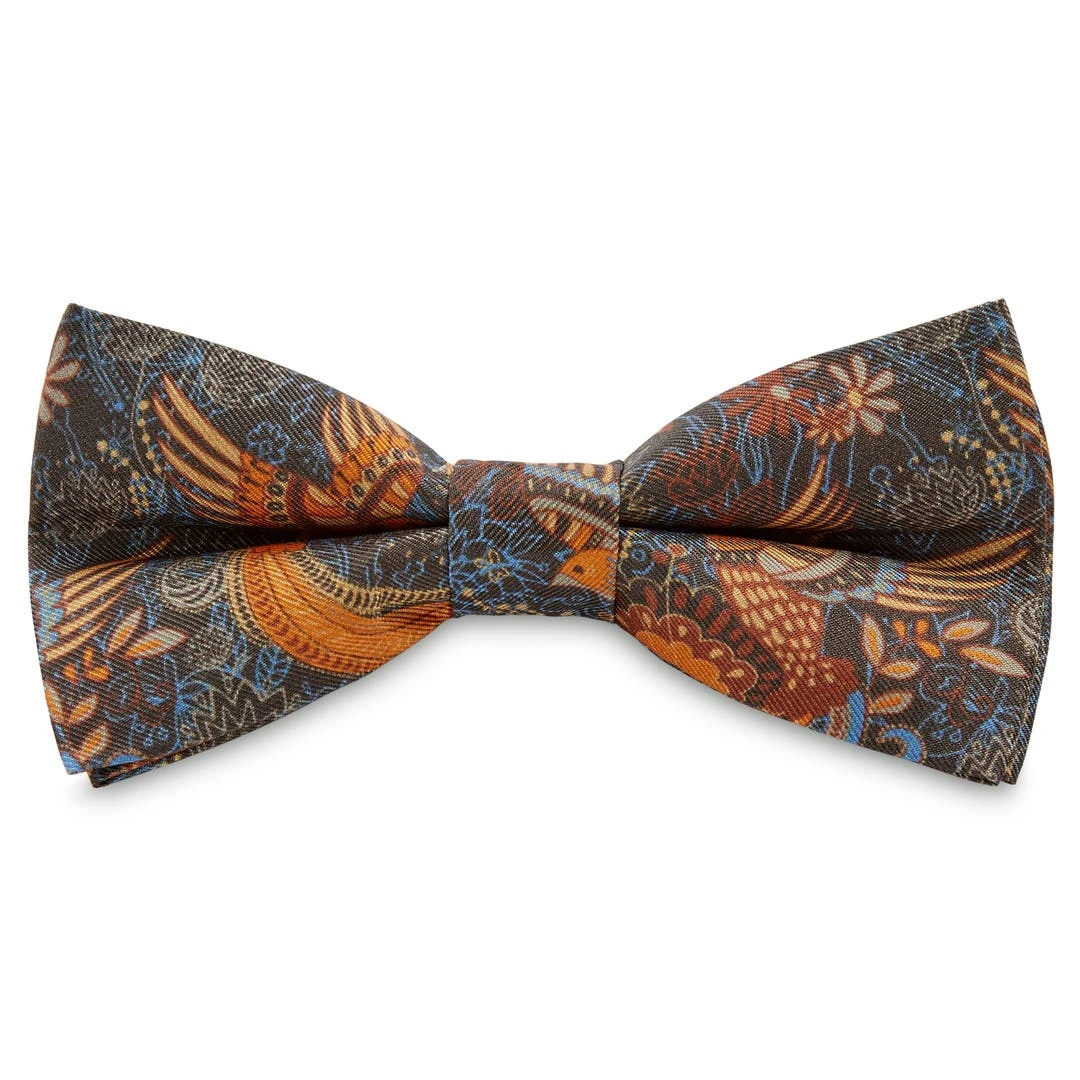 Une combinaison de couleurs vintage indémodables, l’orange et marron, remise au goût du jour au sein de ce noeud papillon à la finition exceptionnelle et décoré de motifs représentant des oiseaux et des fleurs Il est juste trop stylé !
