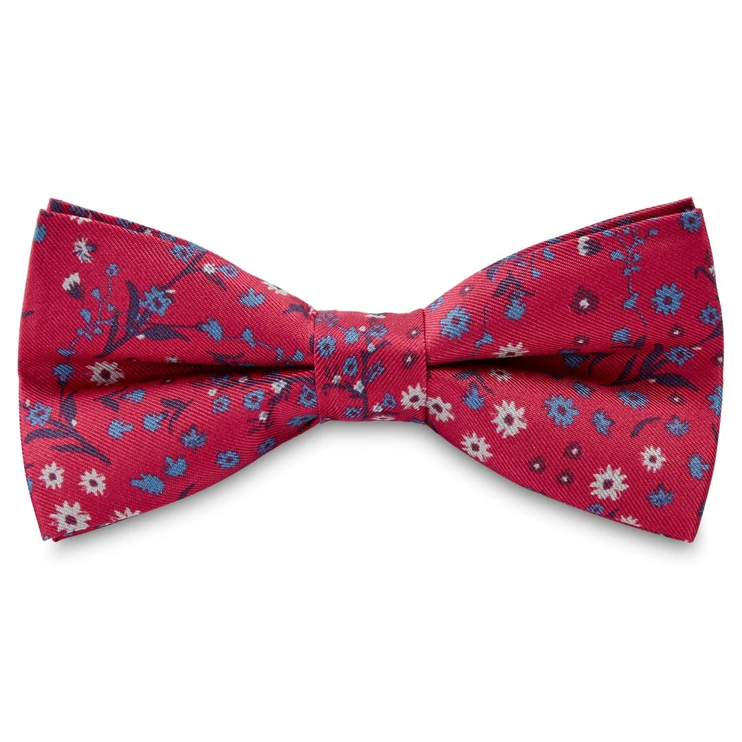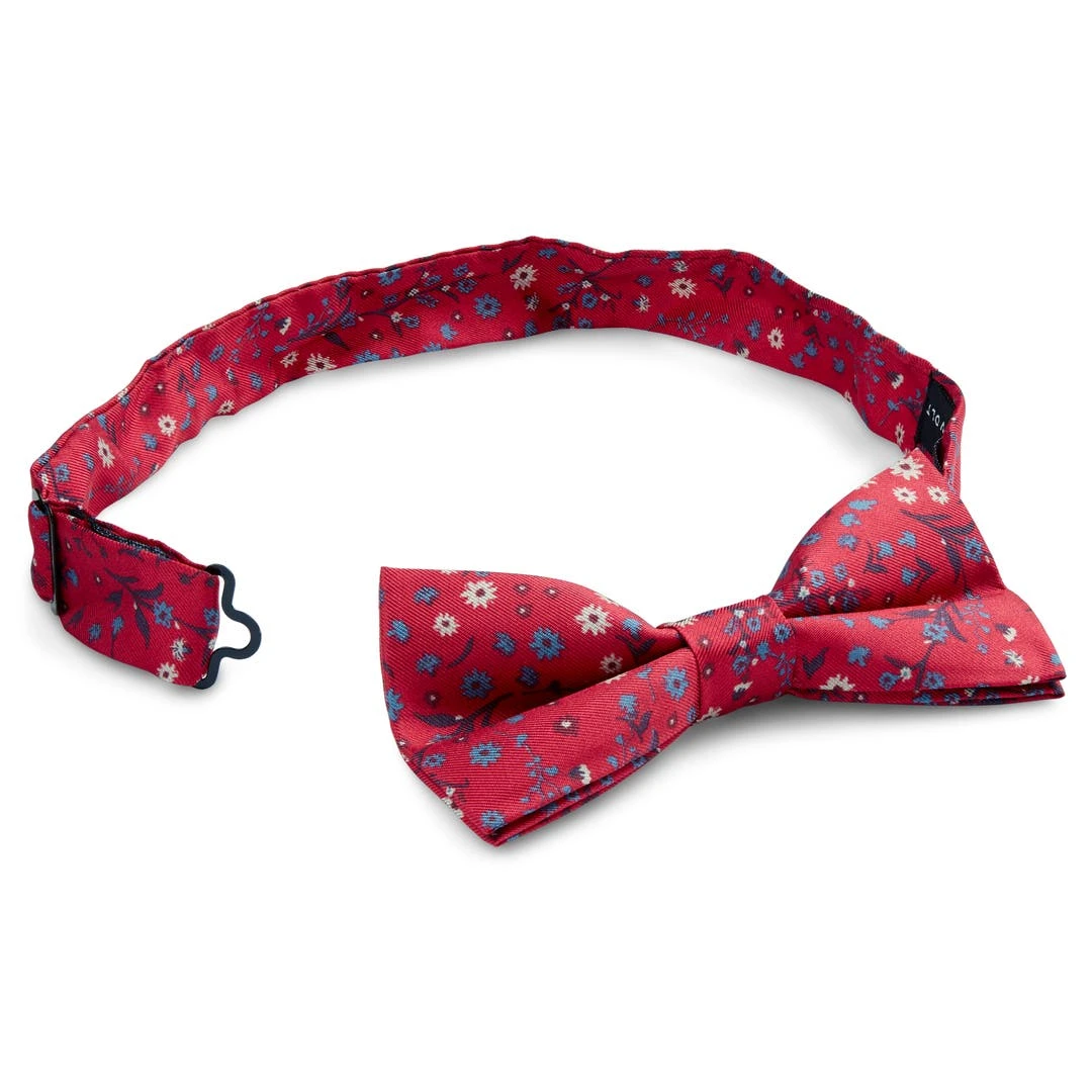 Un fond rouge subtil et un motif floral beige, bleu et noir procurent à ce noeud pap un irrésistible look d’inspiration rétro. Une déclinaison moderne d’un motif classique.