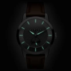 Son boîtier en acier inoxydable chirurgical abrite un superbe mouvement suisse Ronda GMT. Son cadran est recouvert d’un verre saphir – un matériau presque aussi dur que le diamant et pratiquement impossible à rayer. Réglez l’aiguille GMT sur le fuseau horaire de votre choix et elle parcourra le cadran une fois par jour.