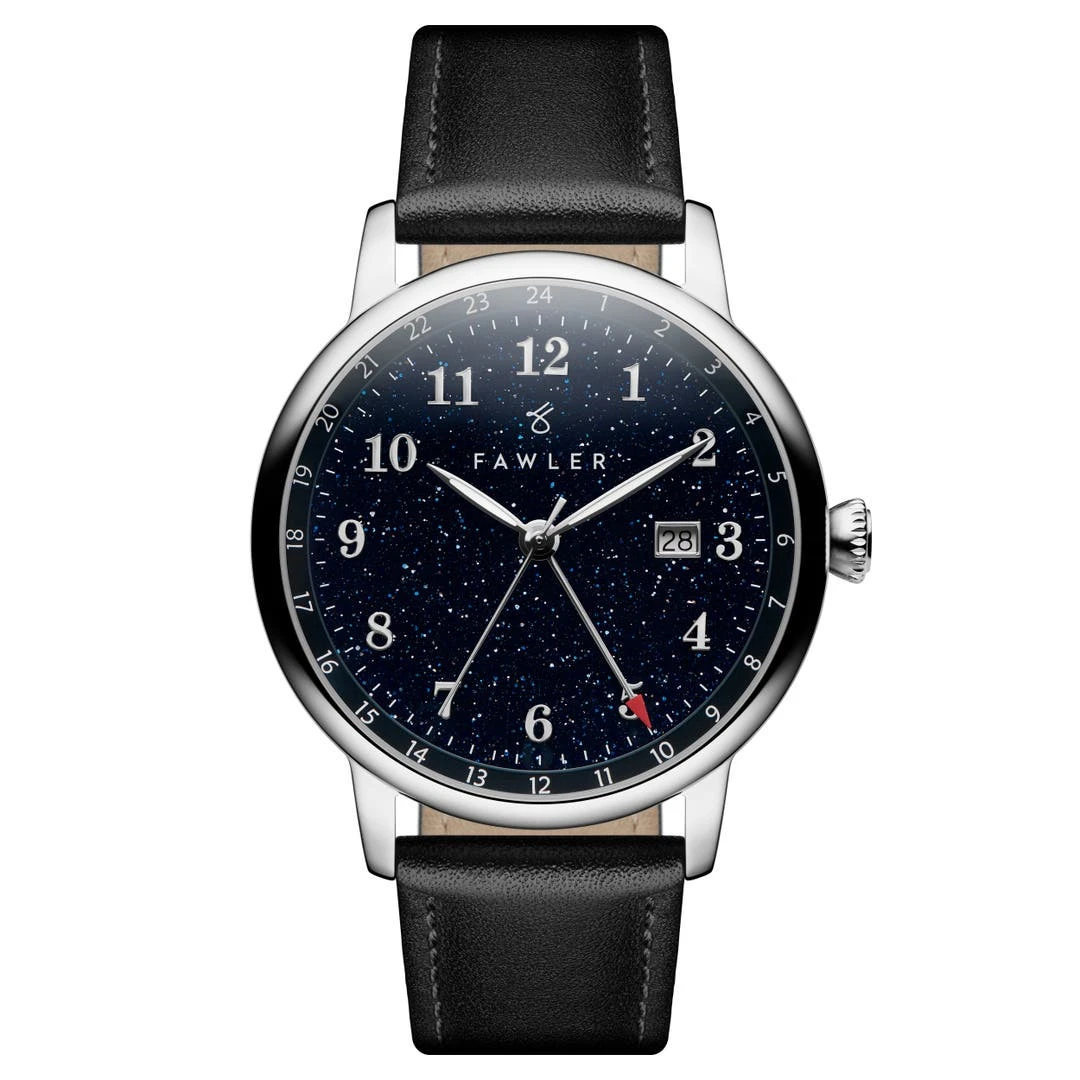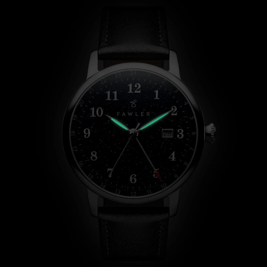 Propulsée par un superbe mouvement suisse Ronda GMT, cette montre pour homme est dotée d’une quatrième aiguille qui fait le tour du cadran une fois par jour. Réglez-la sur le fuseau horaire de votre choix. Si vous êtes un grand voyageur et devez régulièrement régler votre montre, nous vous recommandons de la régler sur le fuseau horaire de votre domicile.