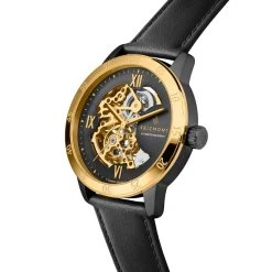Seizmont Dante II | Montre Squelette En Acier Inoxydable Couleur Noir Et Or Avec Bracelet En Cuir
