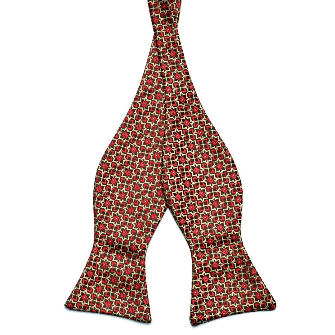 Soyez inspiré par notre élégant nœud papillon à nouer à motif en rouge, beige, marron foncé et et avec des petits détails bleu clair. Voici notre suggestion si vous cherchez un moyen sûr d’égayer même les tenues les plus conservatrices.