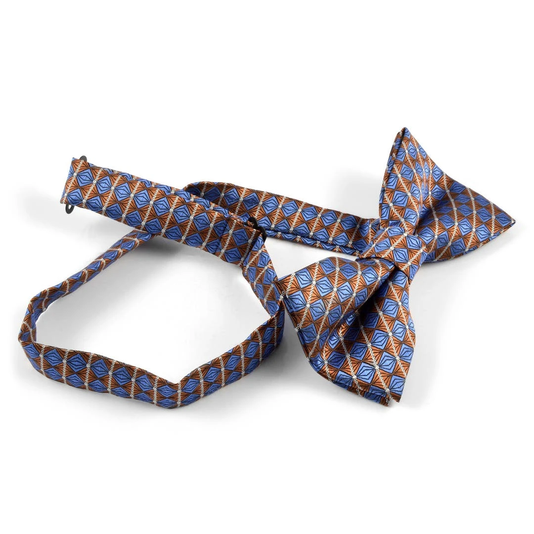 Ce joli nœud papillon alliant bleu électrique, marron sage et argent éclatant s’harmonisera avec la plupart des tenues de votre garde-robe.