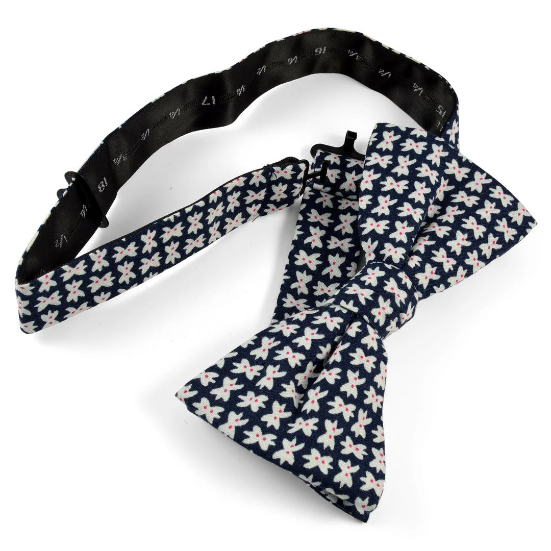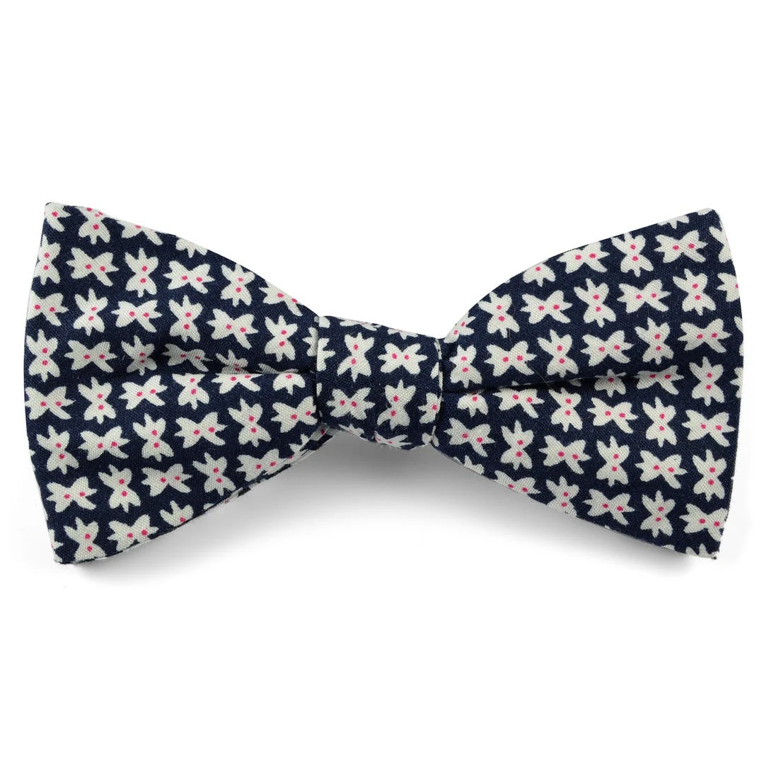 Il affiche un design à fleurs blanc contemporain qui ressort parfaitement sur le tissu de coton bleu foncé.