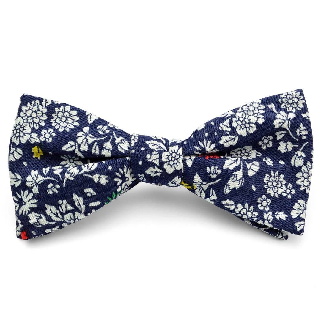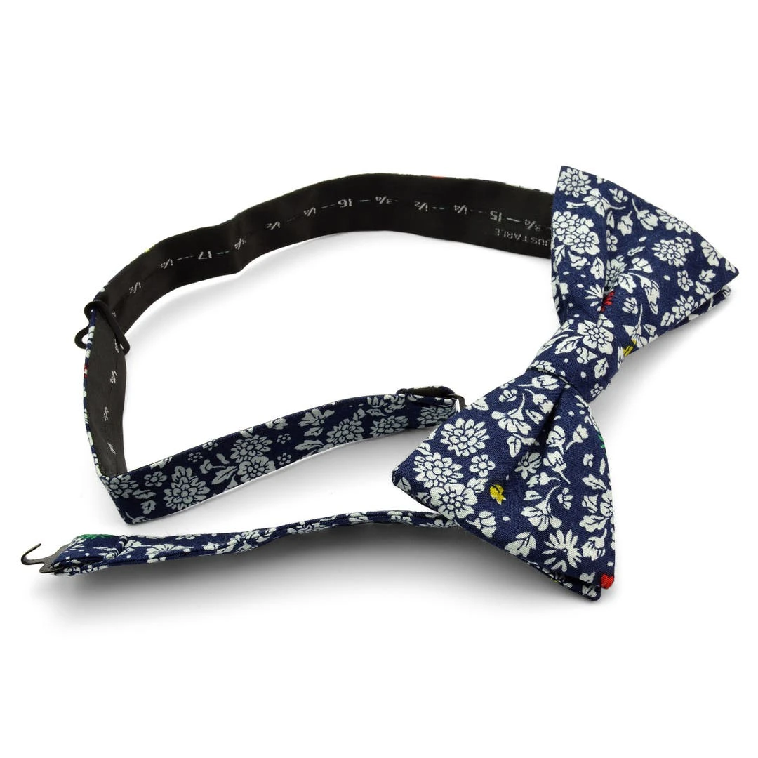 Ce nœud papillon bleu magnifique dispose d’un motif à fleurs blanc joyeux avec quelques accents colorés. Un excellent choix pour une soirée ou un dîner mondain.