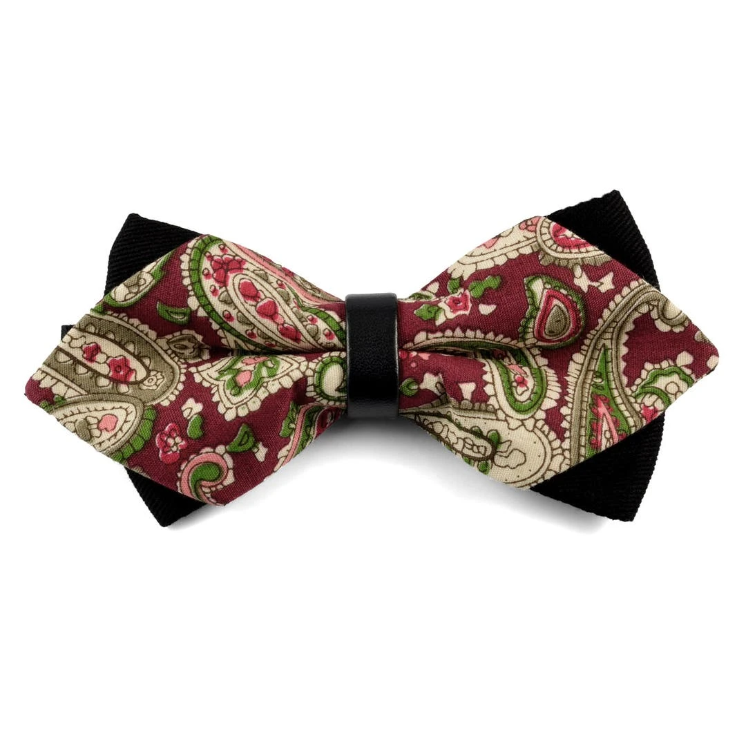 Voici un nœud papillon unique et élégant aux extrémités pointues sur une face avant cousue sur une base rectangulaire pour un joli effet décalé et raffiné. Et bien sûr l’indémodable motif paisley très rétro.