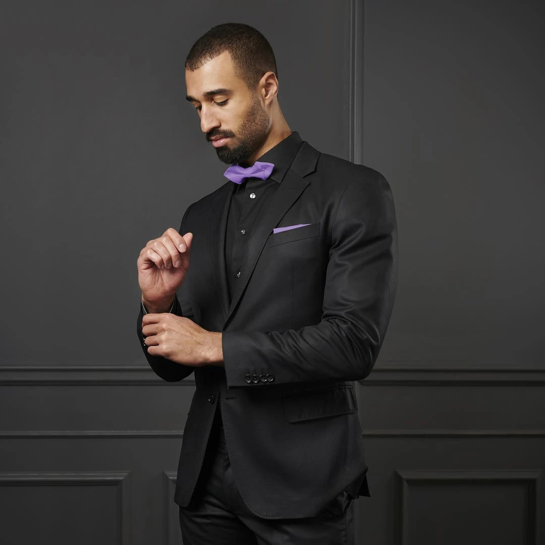 Noeud papillon prénoué avec une forme originale en pointe et une double pièce pliée. Les petits détails font toujours la différence.