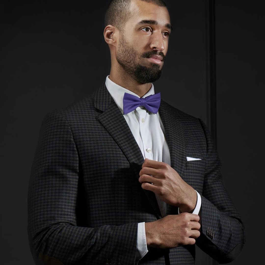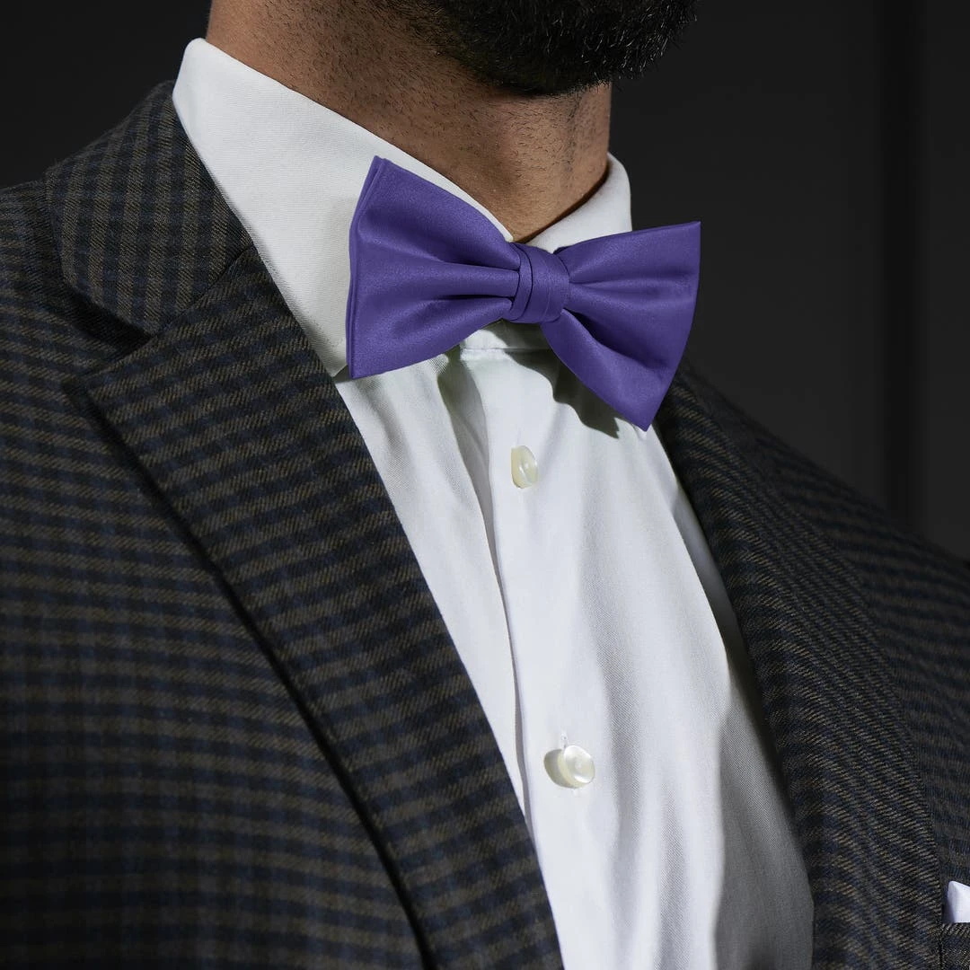 Ce nœud papillon préformé arbore fièrement une très jolie couleur violet électrique.