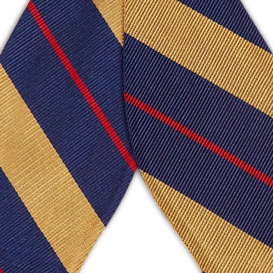 Ce nœud papillon au look moderne et aux rayures bleu, rouge et or très élégantes sera parfait pour peaufiner votre look de dandy.