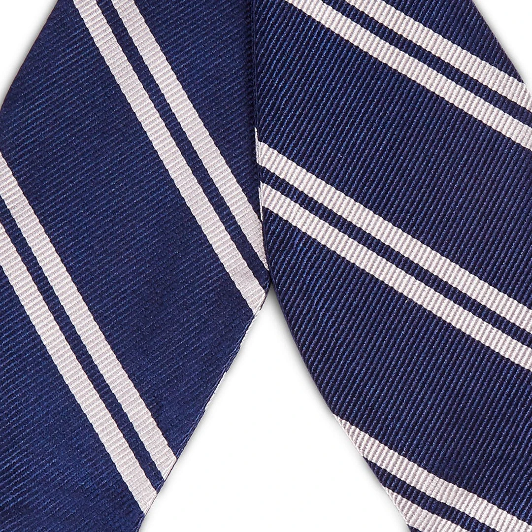 Cet élégant noeud papillon bleu marine est décoré de rayures blanches obliques, un accessoire idéal pour un look tout en contrastes.