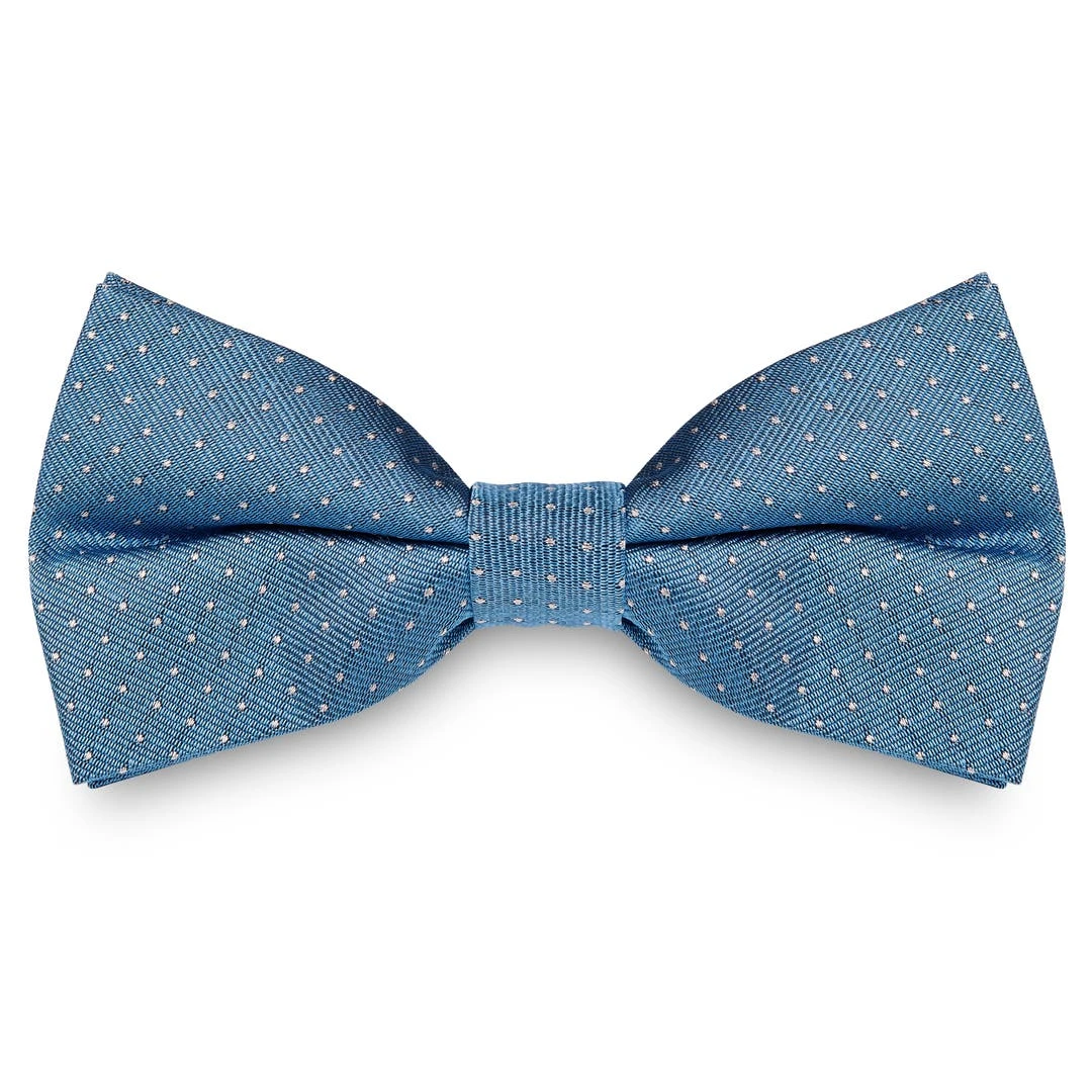 De fins pois blancs sur un fond bleu clair confèrent à ce magnifique nœud papillon un subtil charme vintage qui contraste avec le lustre de son tissage en soie de haute qualité.