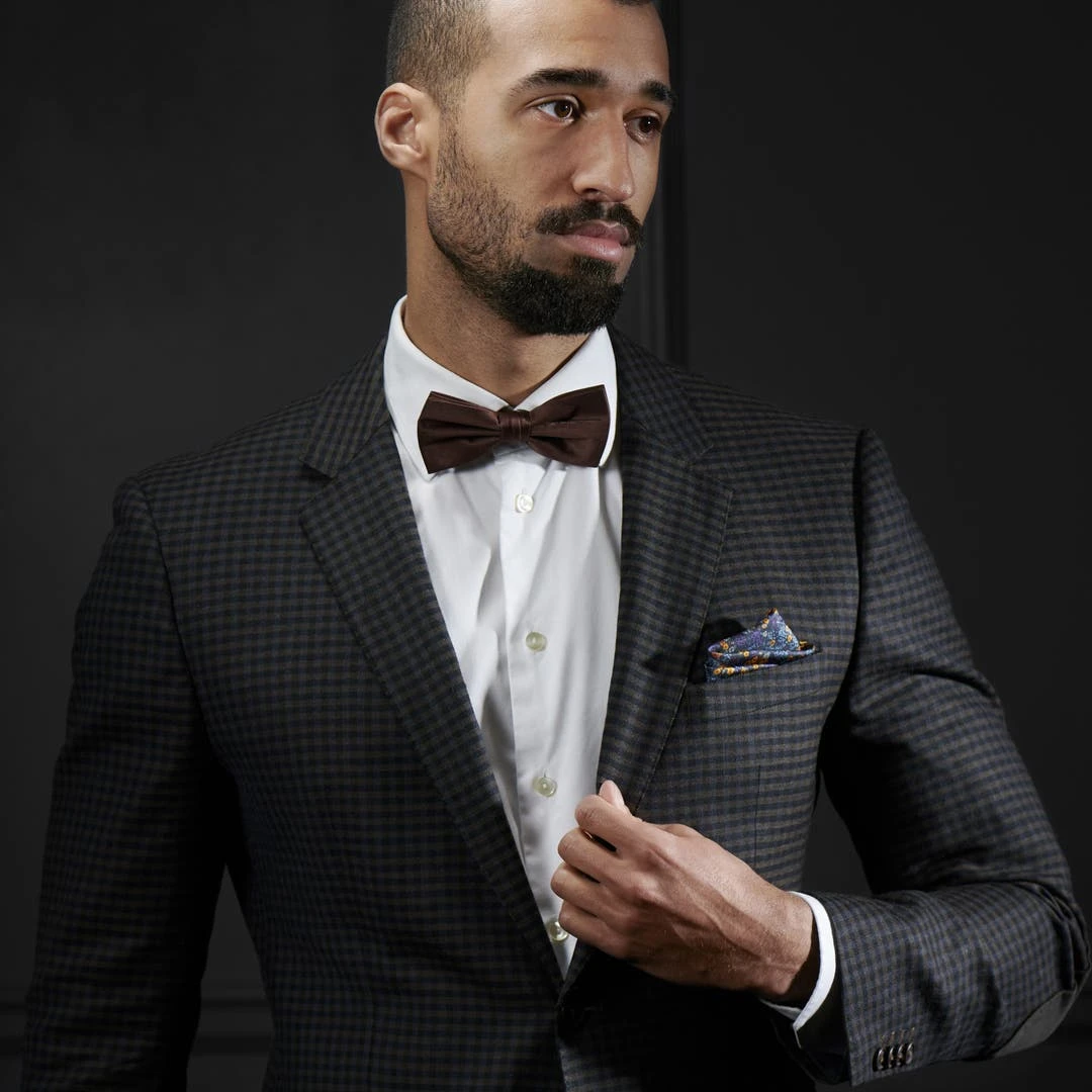 Un noeud papillon classique aux tons naturels, prénoué afin que vous puissiez le mettre en place très facilement – et n’avoir aucun doute quant à votre élégance quelle que soit l’occasion pour laquelle vous le porterez.