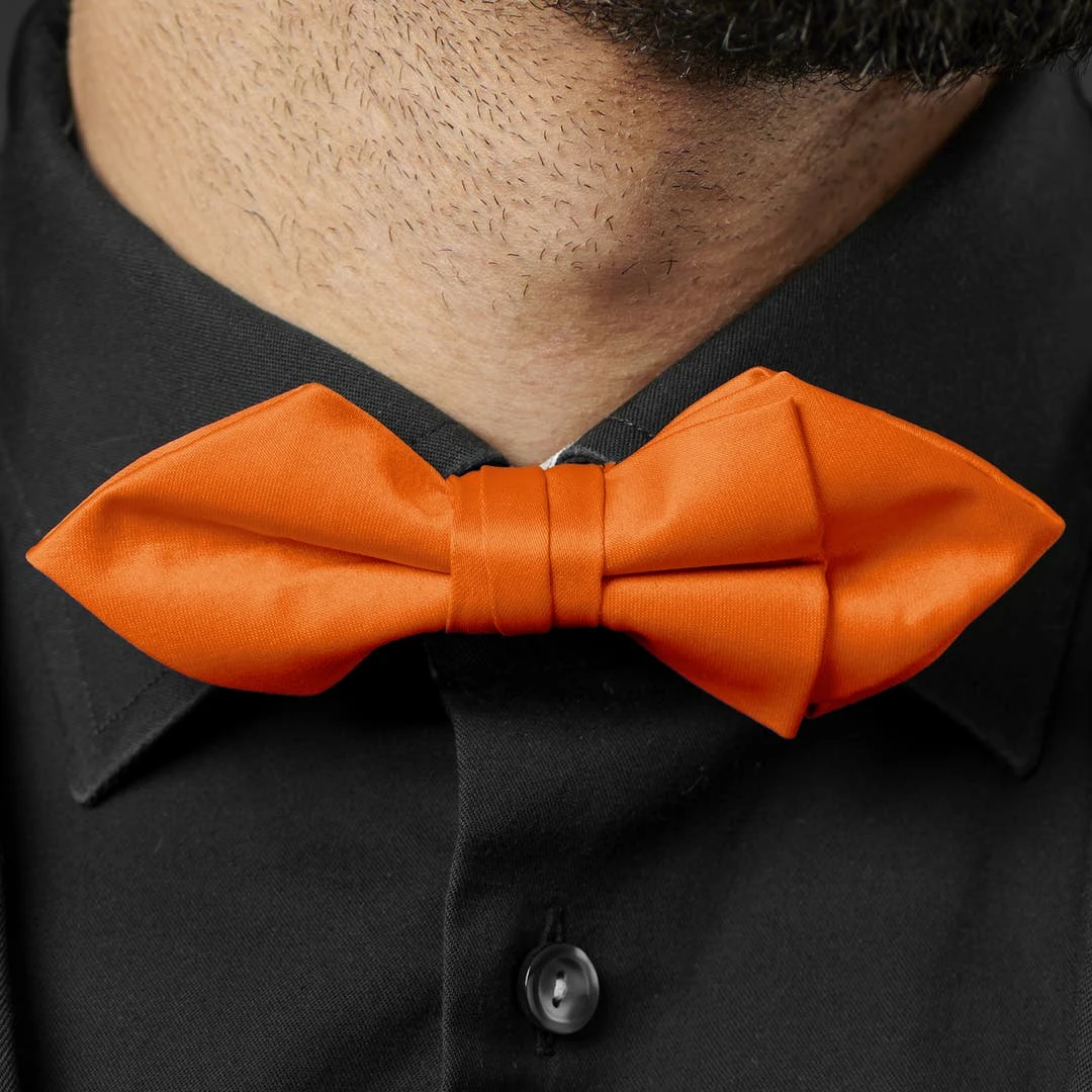 Pour gagner du temps et éviter les crises de nerfs, le noeud papillon prénoué est l’accessoire idéal. Fabriqué dans un tissu doux d’une élégante tonalité orange vif, il fera tout de suite son petit effet.