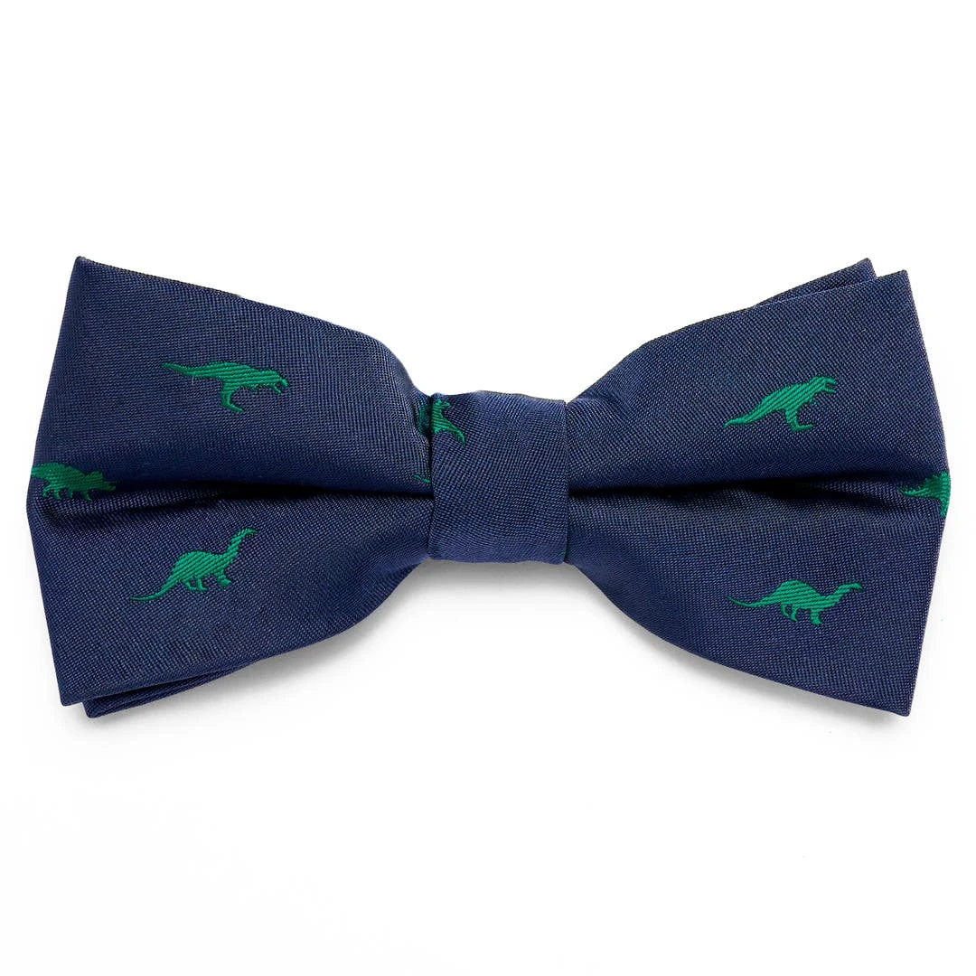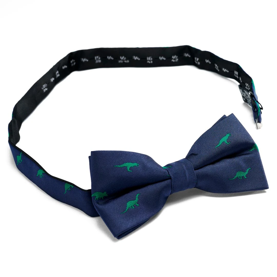 Fabriqué de polyester doux et durable, ce nœud papillon fait à la main est entièrement ajustable pour s’adapter à tous, ou presque… Pré-noué pour être enfilé facilement et rapidement. Comprend un quatuor de nos dinosaures préférés en vert contrastant parfaitement avec le bleu marine – stégosaure, t-rex, tricératops et brontosaure.